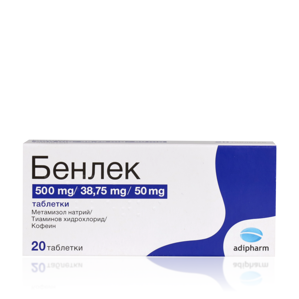 ბენლეკი არის კომბინირებული მედიკამენტი, რომელიც გამოიყენება ტკივილის შესამსუბუქებლად და სიცხის დასაწევად. მისი შემადგენლობა მოიცავს სამ აქტიურ ინგრედიენტს, რომლებიც ერთად მოქმედებენ ტკივილის სხვადასხვა ასპექტზე. მეტამიზოლი უზრუნველყოფს ტკივილგამაყუჩებელ, სიცხის დამწევ და ანთების საწინააღმდეგო ეფექტს. კოფეინი აძლიერებს მეტამიზოლის მოქმედებას და ხელს უწყობს მის შეწოვას ორგანიზმში. ვიტამინი B1 ხელს უწყობს ნერვული სისტემის ფუნქციონირებას და აუმჯობესებს ნერვული იმპულსების გადაცემას. ბენლეკი განკუთვნილია ზომიერი და ძლიერი ტკივილის სიმპტომური მკურნალობისთვის, რომელიც გამოწვეულია სხვადასხვა მიზეზით.